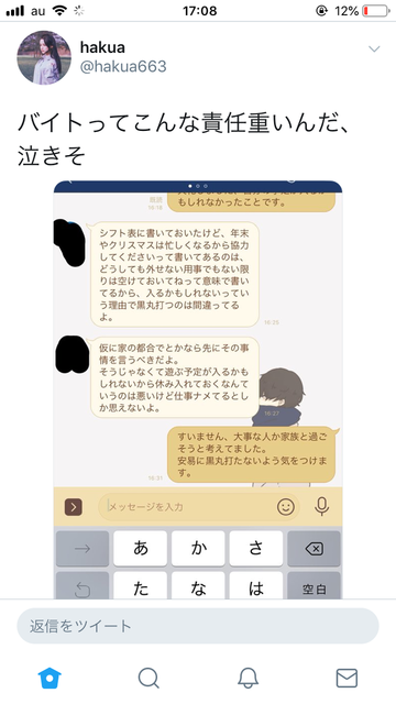 【画像】Twitter女子「バイトってこんなに責任重いんだ…泣きそう…まぢでやばい…晋さん…😭」←話題にWWWWWWWWWWWWWW