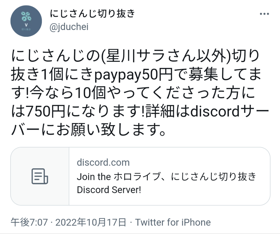 - 切り抜き作ったことないけど儲かるらしいから参入したいって感じの募集やな