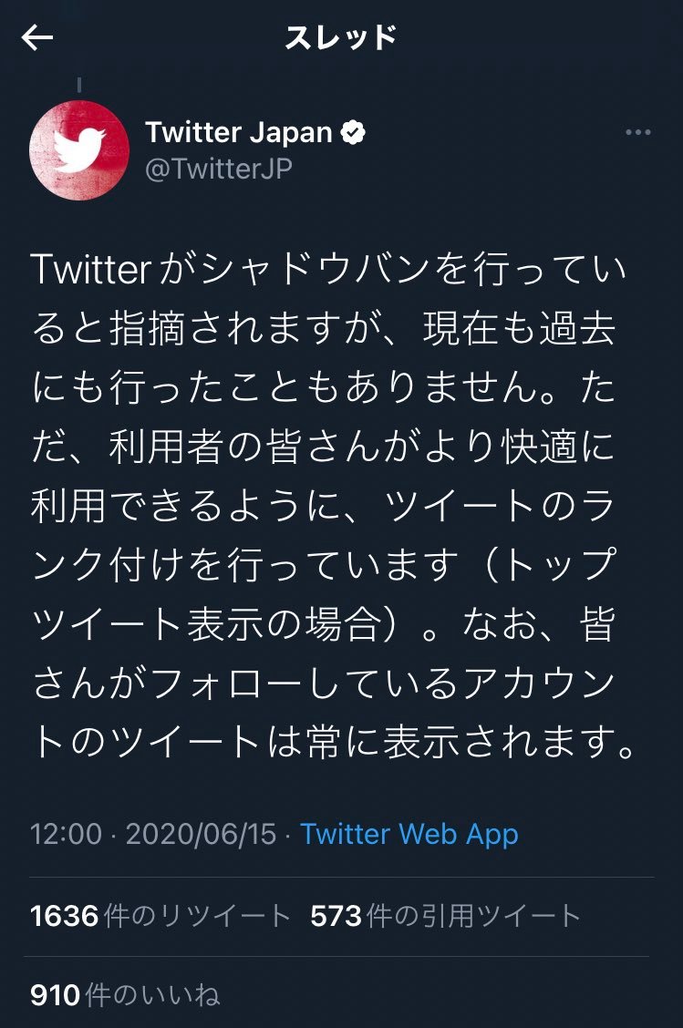 過去にシャドウバンを行ったことはないと断言したTwitter Japan公式さん、シャドウバンされてしまう