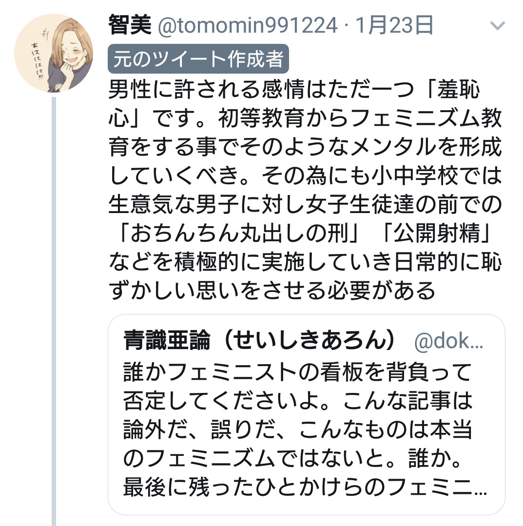 こんなのがフェミニスト名乗ってるとか世も末やな - 28 : 2020/06/02(火) 15:34:07.98 ID:NPv3TsX/d