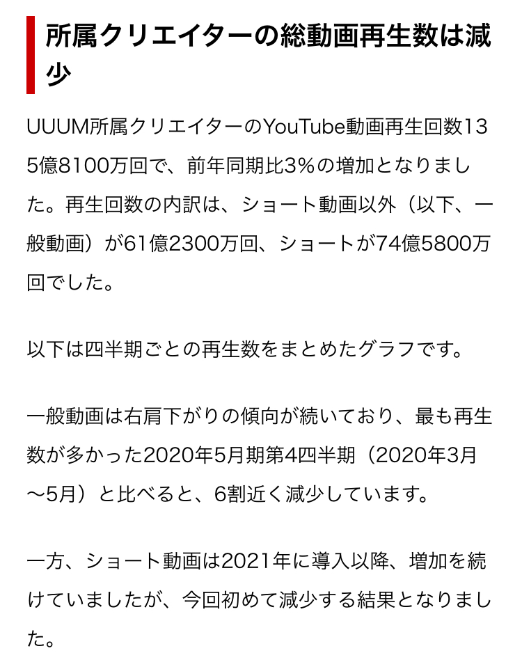 UUUMの決算資料を元に抽出したYouTubeの再生回数や - 46 : 2024/01/18(木) 13:56:05.311 ID:YxHIMcpIp