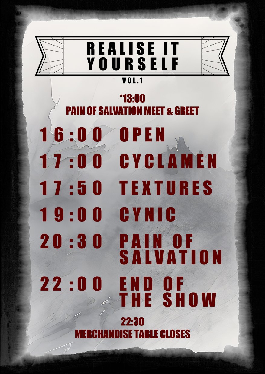 @CynicOnline60 min set (Performing songs from Traced in Air, Ascension Codes, and rarities from Cynic’s catalog)
