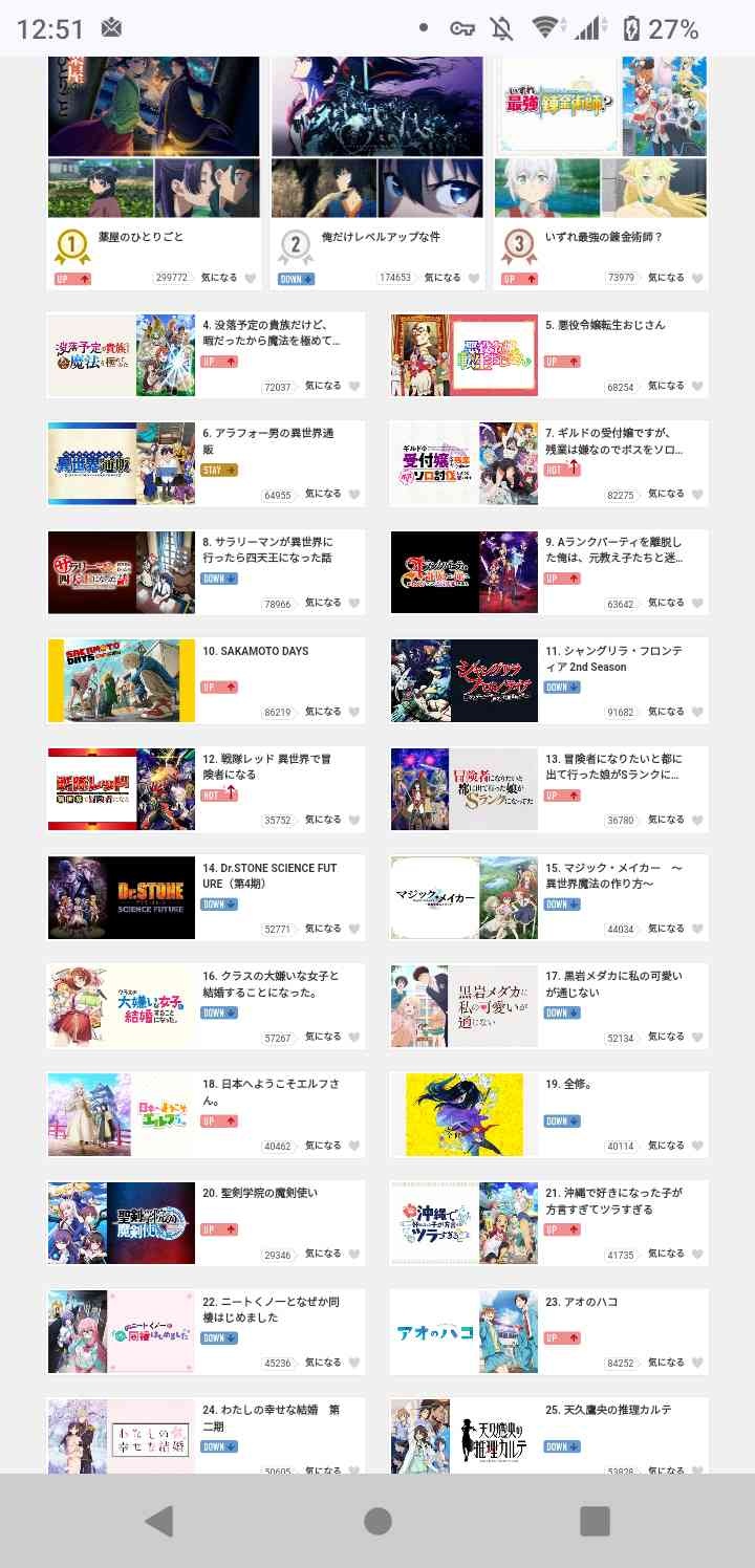 - やっぱプライムビデオで頻繁に1位取ってる薬屋や俺ップやサカモトが最強ってこと?