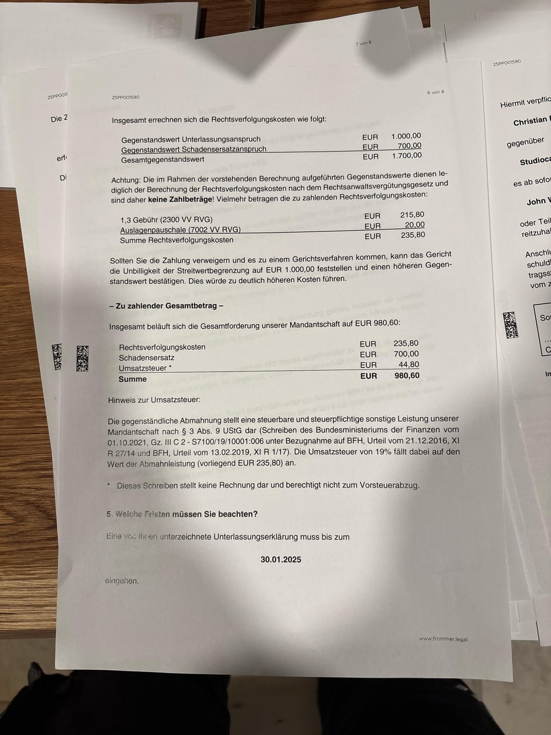 - ドイツの裁判所で裁判起こすぞ!ってキレられてるのか?
