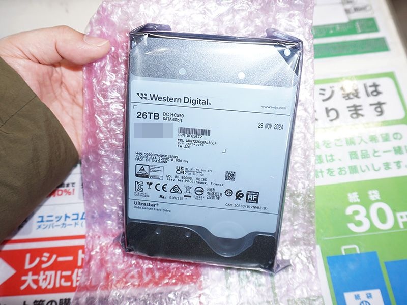 価格は順に129,800円、113,700円。なお、容量26TB HDDの店頭販売を確認したのは今回が初。