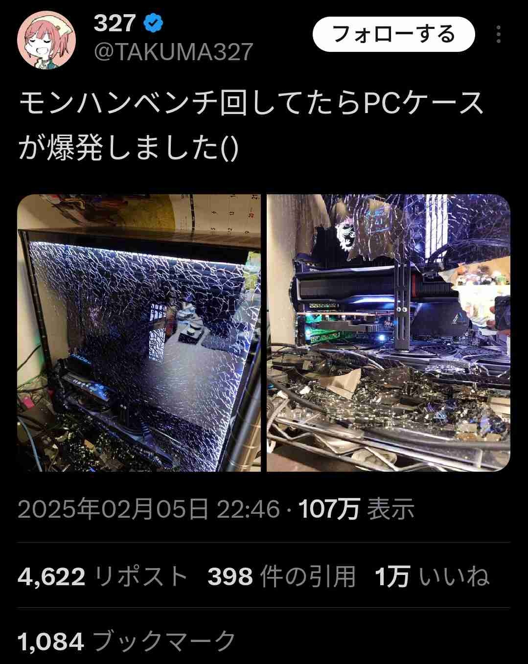 グラボの排気が直接当たって熱い部分と当たってなくて冷たい部分があれば普通に割れる - 29 : 2025/02/06(木) 09:59:10.640 ID:iIOI+Hkm0
