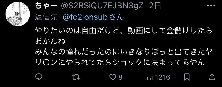 - 知らんけどズリネタにモゾモゾ文句言ってんの恥ずかしくないんかな