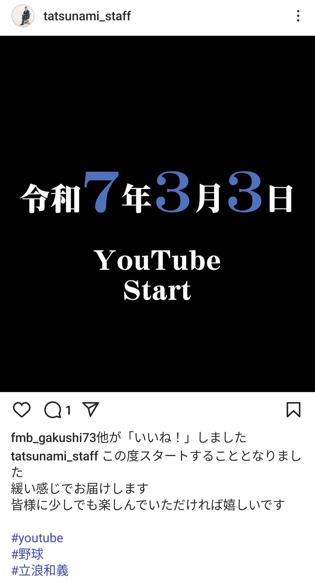 立浪和義YouTubeチャンネル開設www