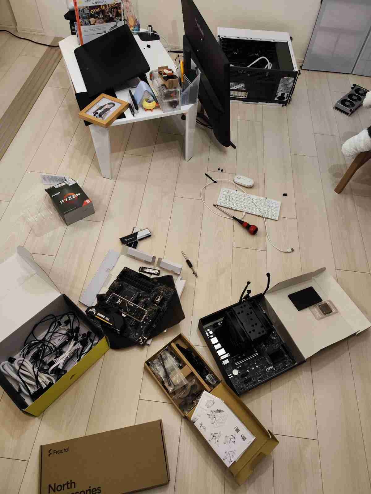 - 配線綺麗にするぞと思ってスケスケのケース買ったのに、途中でだるくなってクソ汚い配線がずっと見えてる
