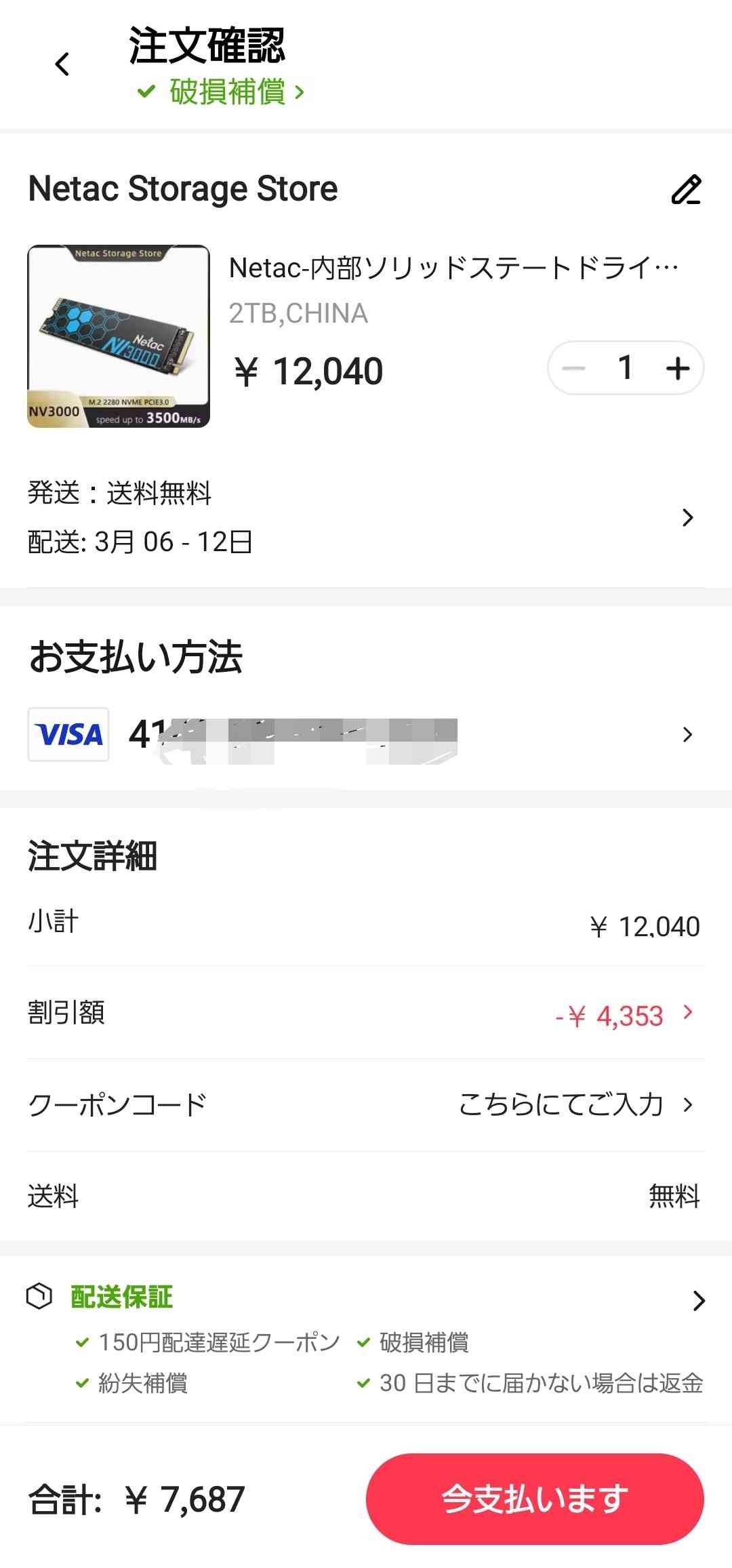 - 前に買ったHIKSEMIの2Tが全然下がってないどころか上がってて草