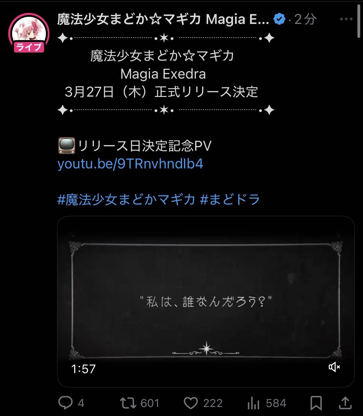 この度、『マギアレコード 魔法少女まどか☆マギカ外伝』は 2024年7月31日15:00をもちまして、iOS/Android版のサービスを終了させていただくこととなりました。 - 11 : 2025/03/08(土) 20:24:51.073 ID:CXhBShFP0