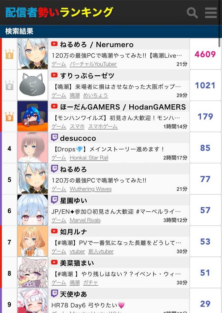 原神、ついに生放送同接で鳴潮に10倍差をつけられてしまうwww