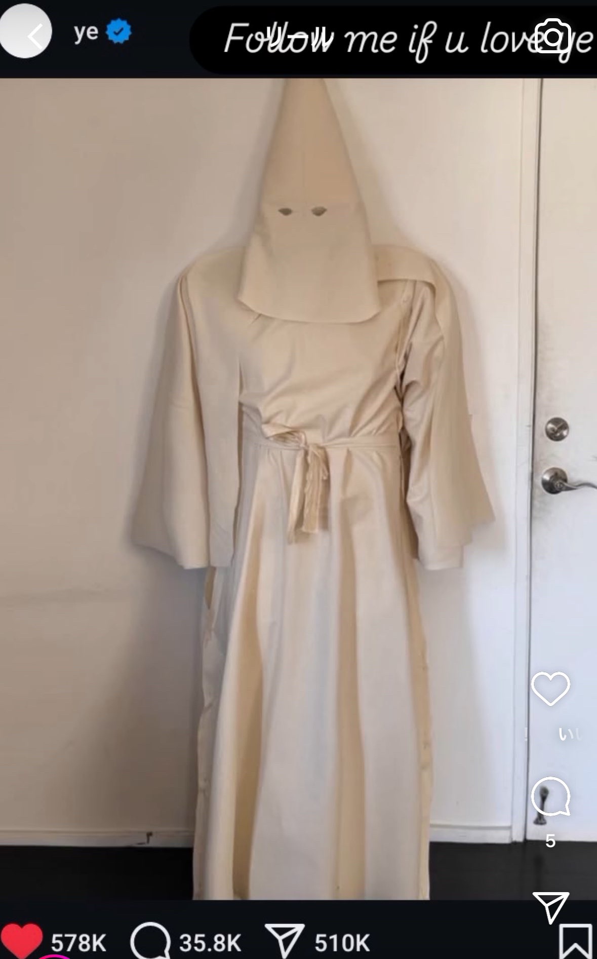 Ye Posts Photo of KKK Robe After Announcing Return of Sunday Service: ‘Outfit of the Day’