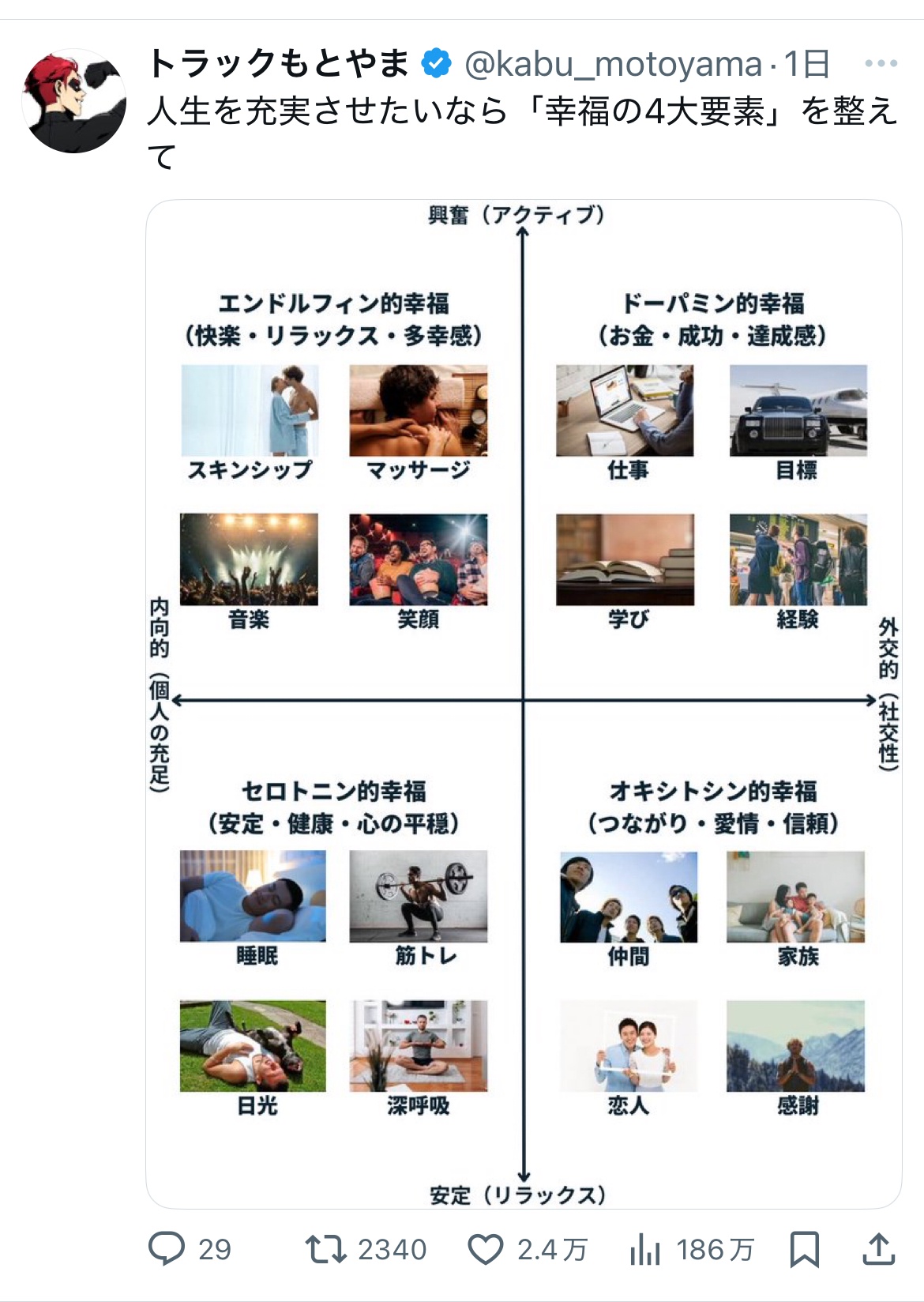 だいぶエンドルフィンとセロトニンに寄ってるわ自分