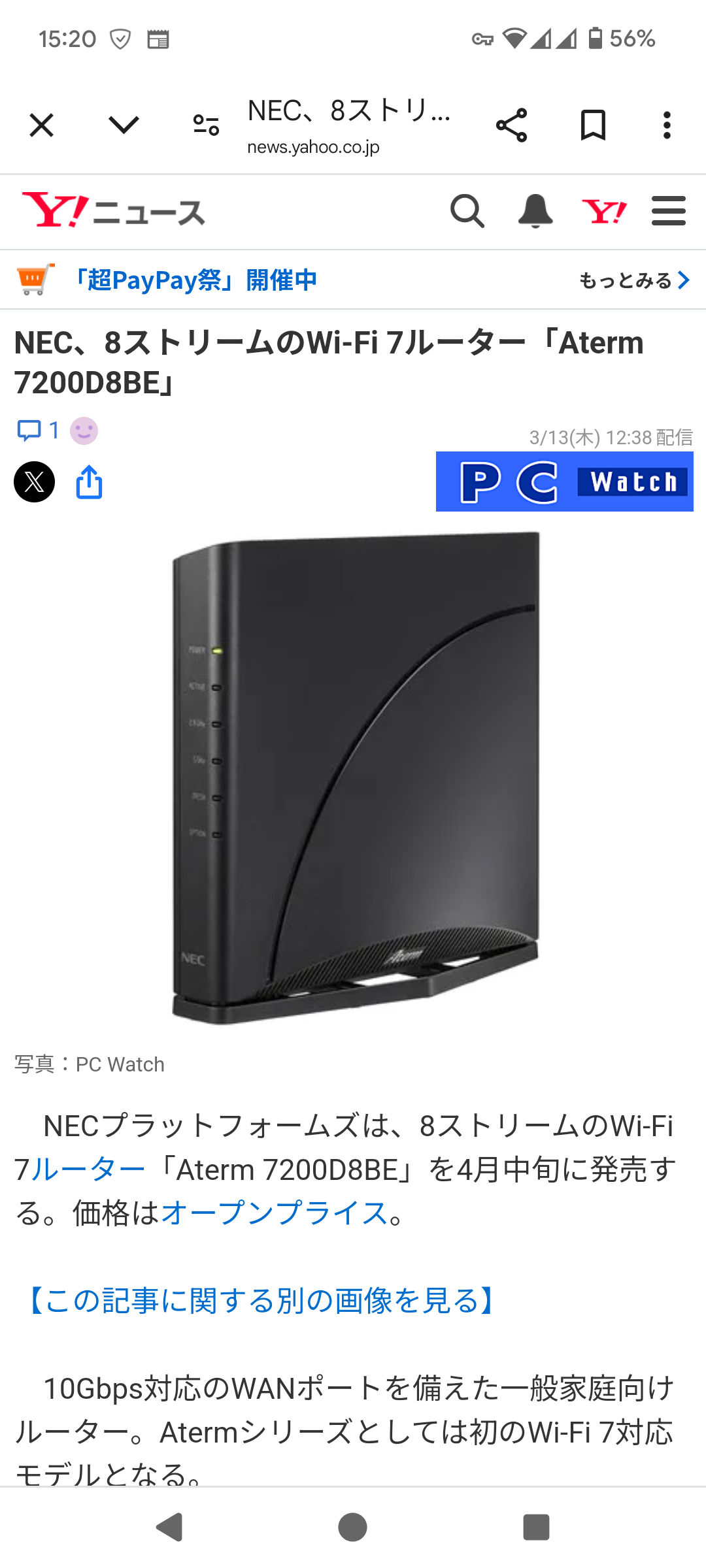【Wi-Fiルーター】NEC、やっとWi-Fi 7のルーターを発売する。他社より一年遅れ。WAN10G,LAN2.5Gが1つ、あとはLAN1G