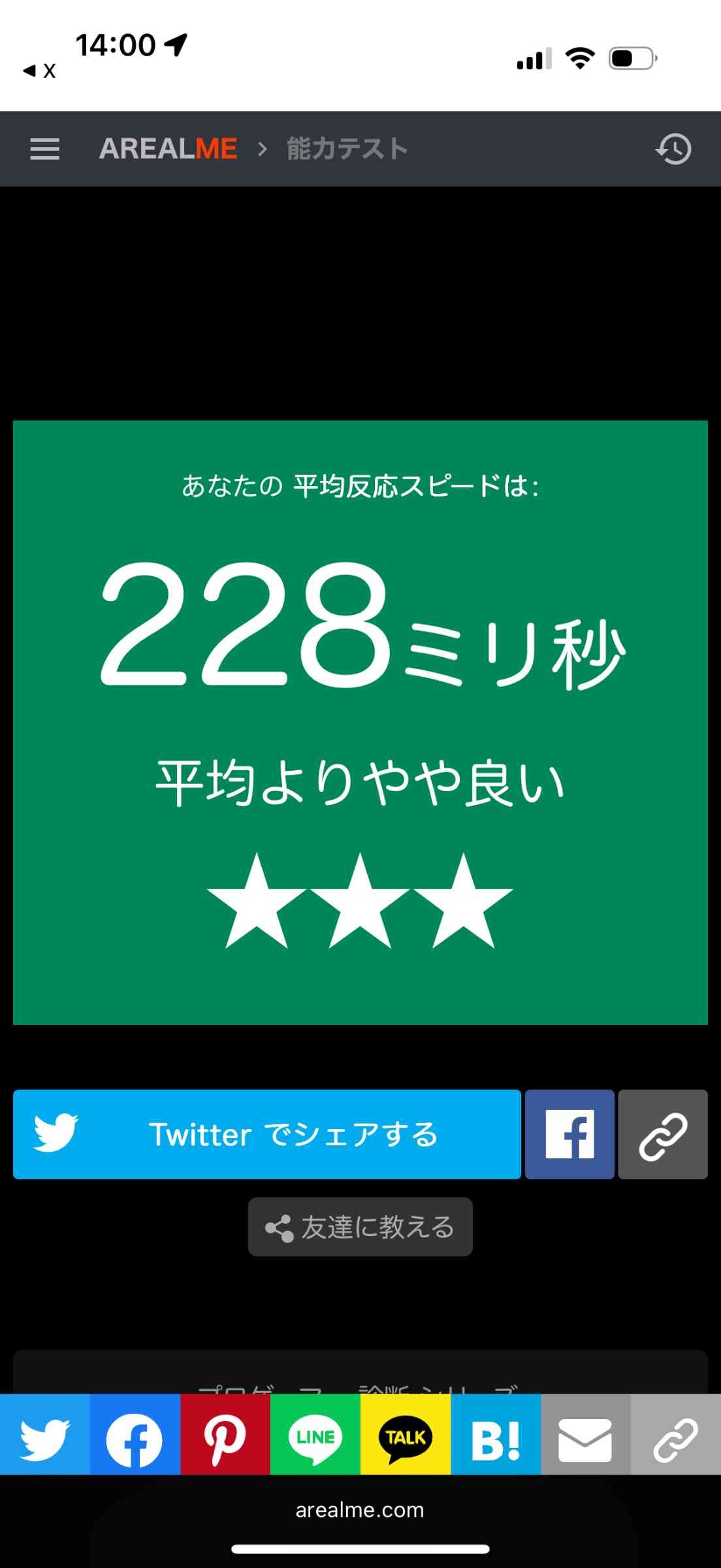 https://www.arealme.com/reaction-test/ja/ - 2 : 2025/04/04(金) 14:03:30.876 ID:SXQWLrkFs