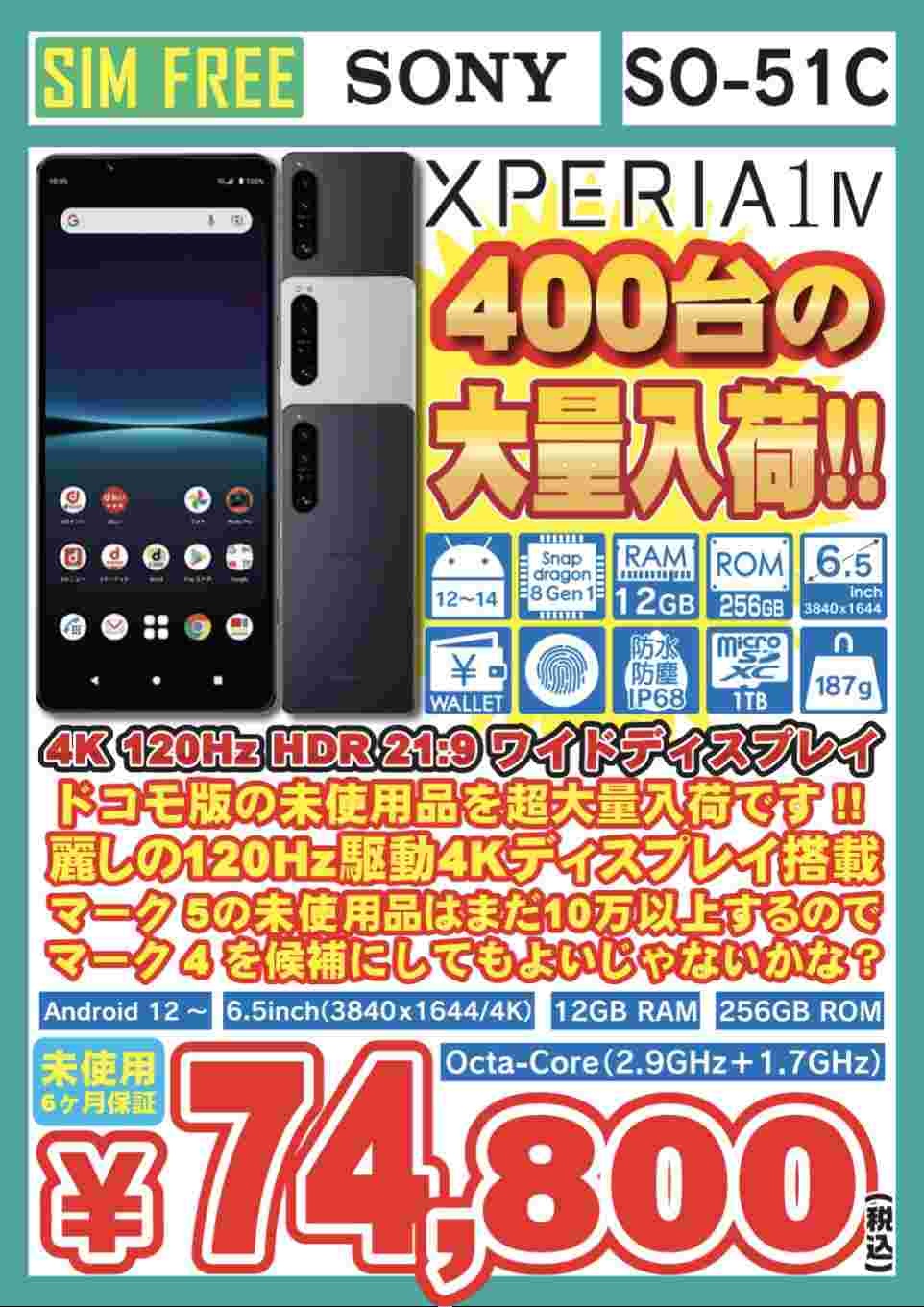 【乞食速報】エッヂ公認スマートフォン「Xperia 1 IV」とんでもない投げ売りセール開催www