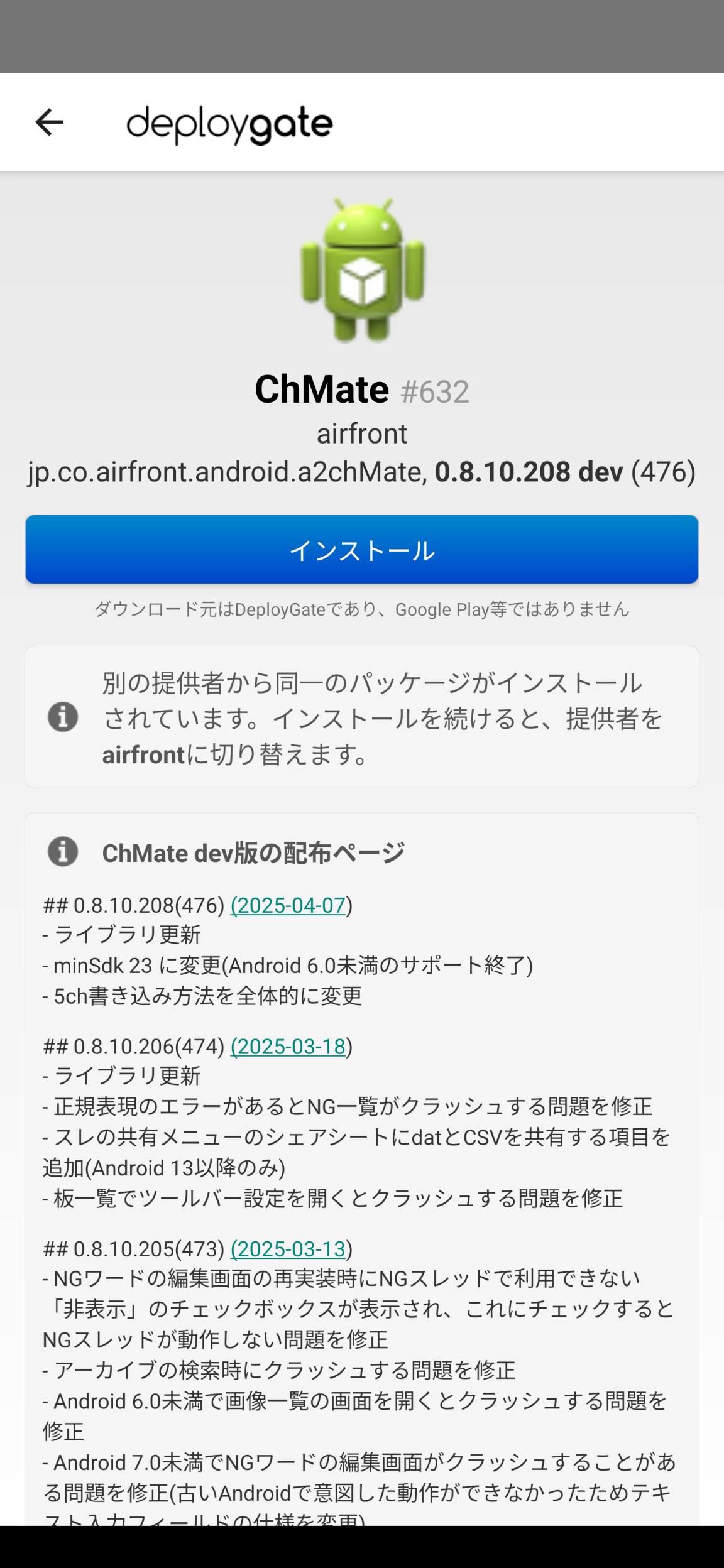 ・5ch書き込み方法を全体的に変更minSdk 変更によりネイティブライブラリが非圧縮でAPKに格納されるようになったため、APKのサイズが前のバージョンより約14MB増加しています。 https://developer.android.com/build/releases/past-releases/agp-3-6-0-release-notes?hl=ja#extractNativeLibs