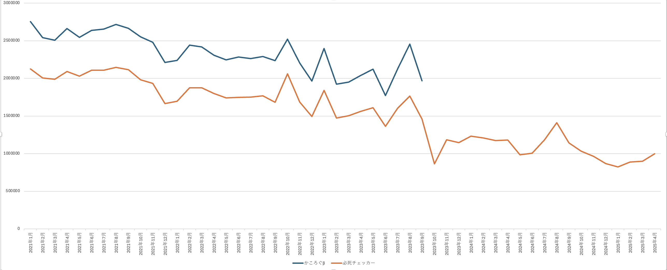 かころぐβのデータが2023年9月までしかないので必死チェッカーも併記した