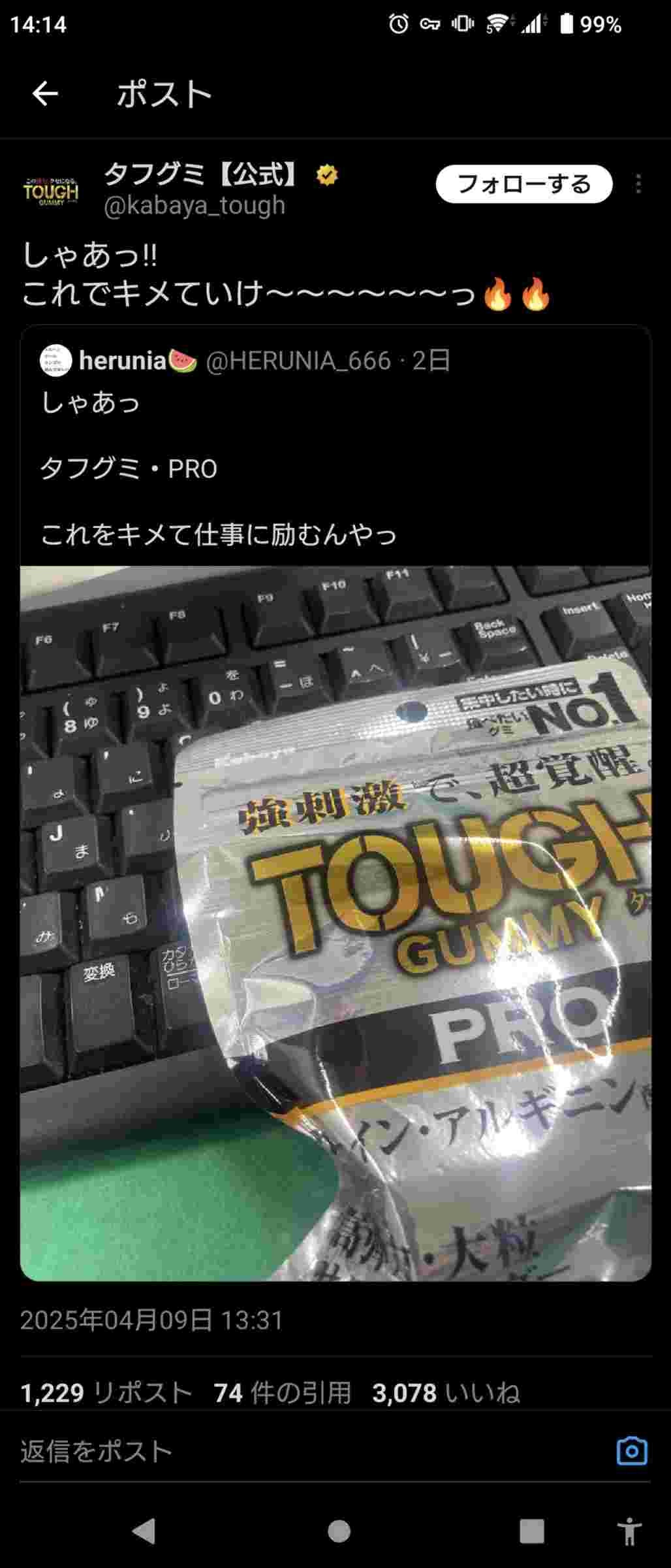 タフグミ公式、ついにタフ営業を開始。語録をツイートしてしまった模様…