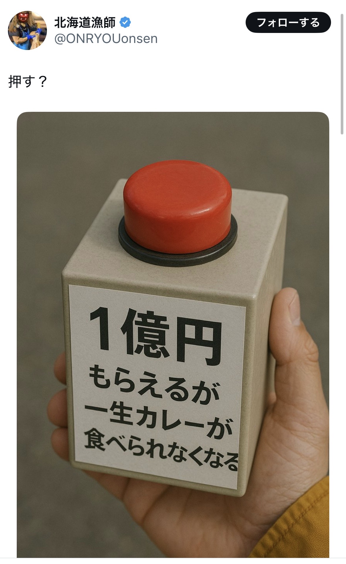 へぇー俺なら1億円払ってでもカレー食べるけどなぁ