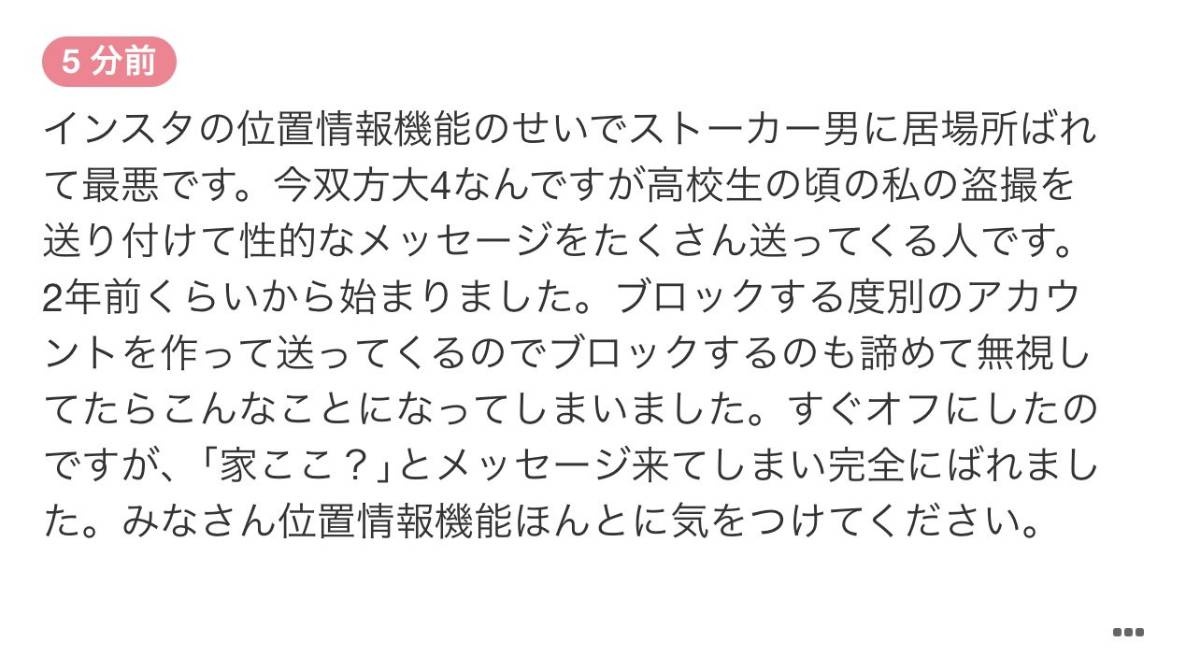 インスタの位置情報共有間違ってオンにした瞬間フォロワーにこの通知いくの怖すぎるし即オフにした - 53 : 2025/04/11(金) 04:13:42.515 ID:R3HuakMNb