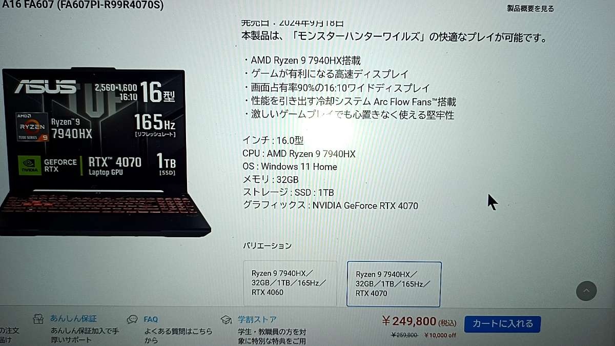 本当は4060のでよかったが1週間まっても在庫が復活しなかった