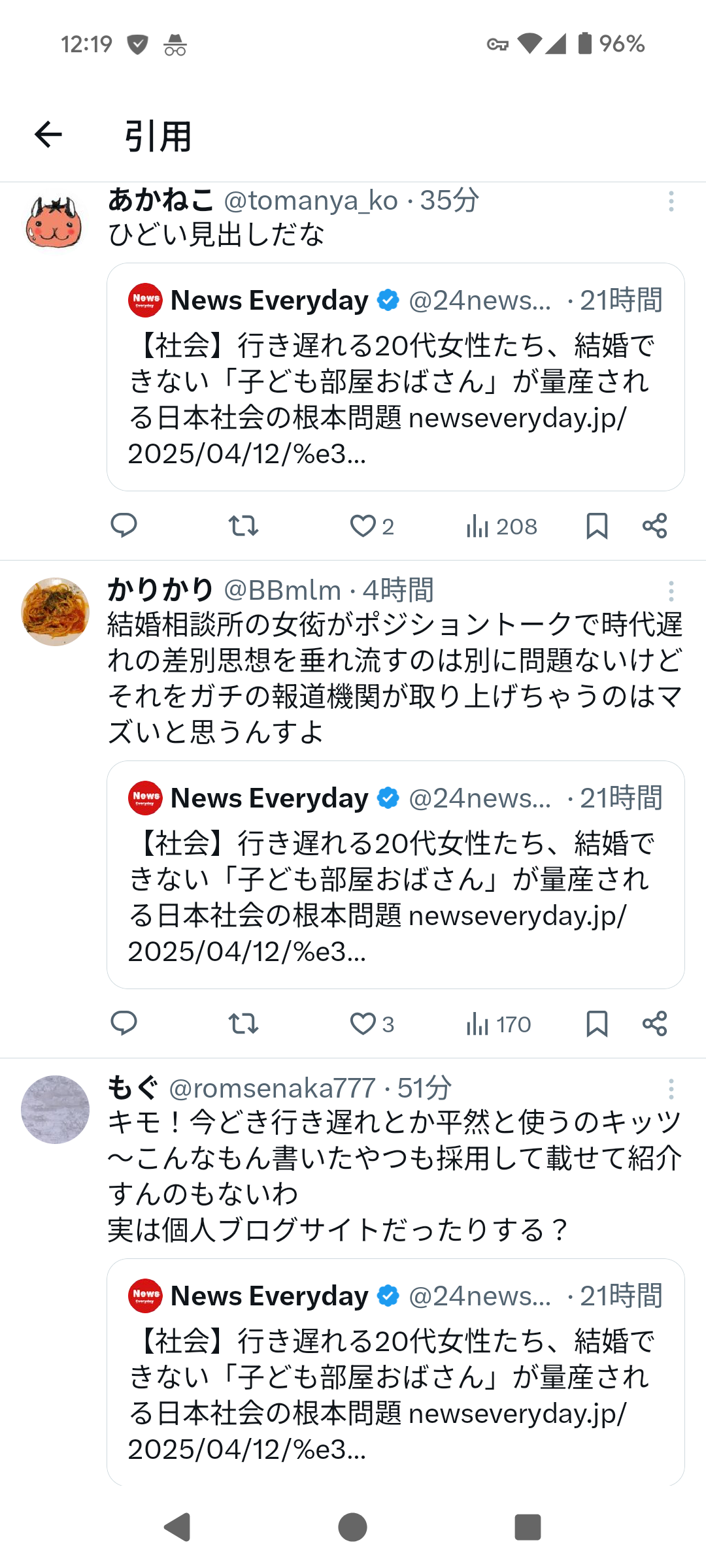 ニュースサイト「行き遅れる女性、子供部屋おばさんの量産」👈女性差別ではないかとSNSで炎上中🔥
