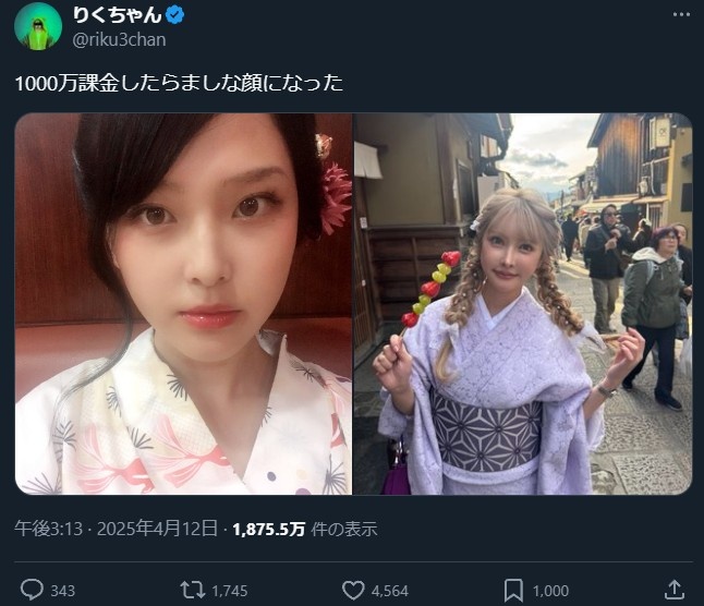 Twitter女さん「1000万課金したらマシな顔になった」←大変貌した姿に1875.5万いいねabeabeabeabeabeabeabeabeabeabeabeabeabeabeabeabe