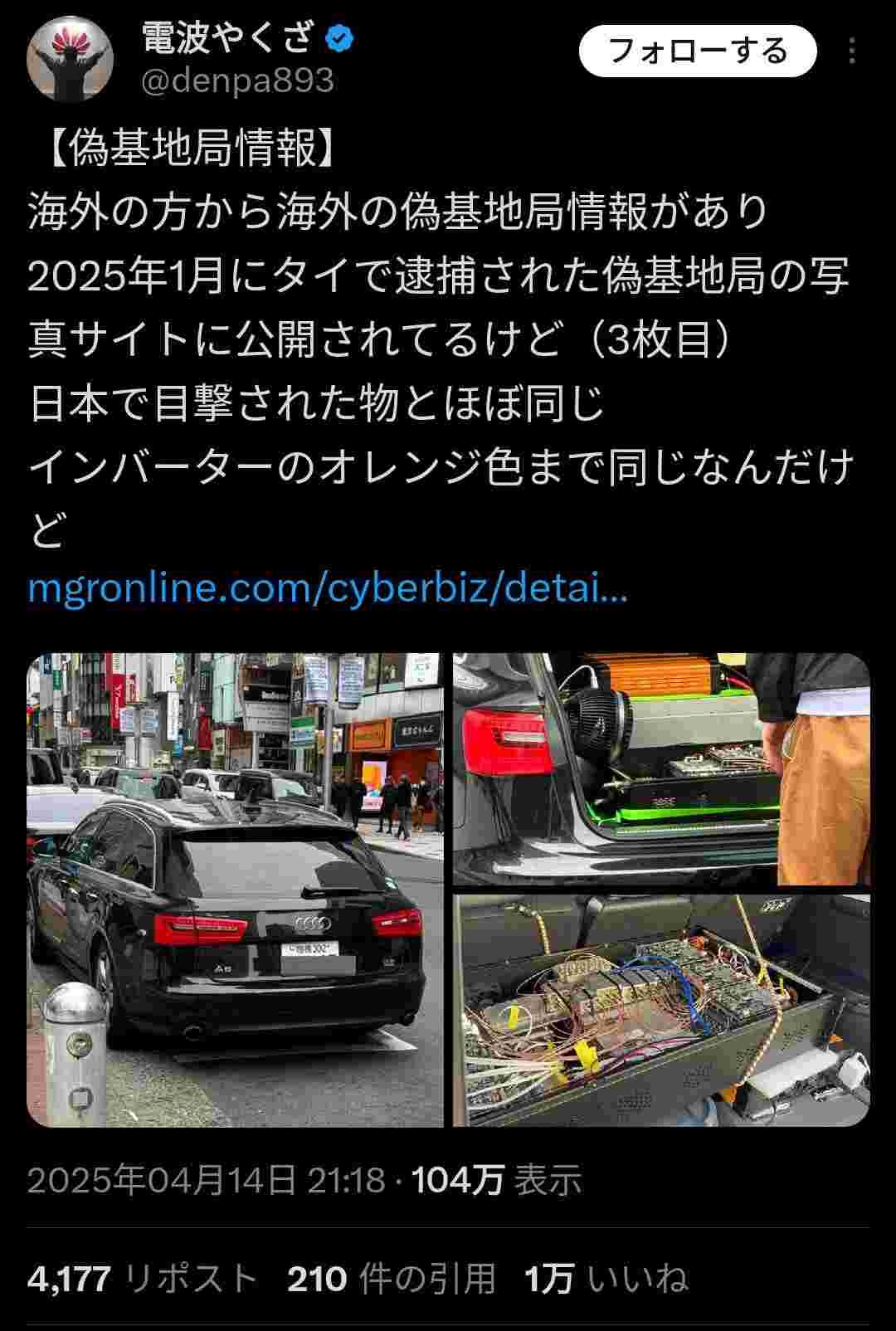 - ただ詐欺ショートメッセージ送ってくるだけらしいけどそれだけでこんな装置稼働させて走り回るコストに見合うとは思えんわ