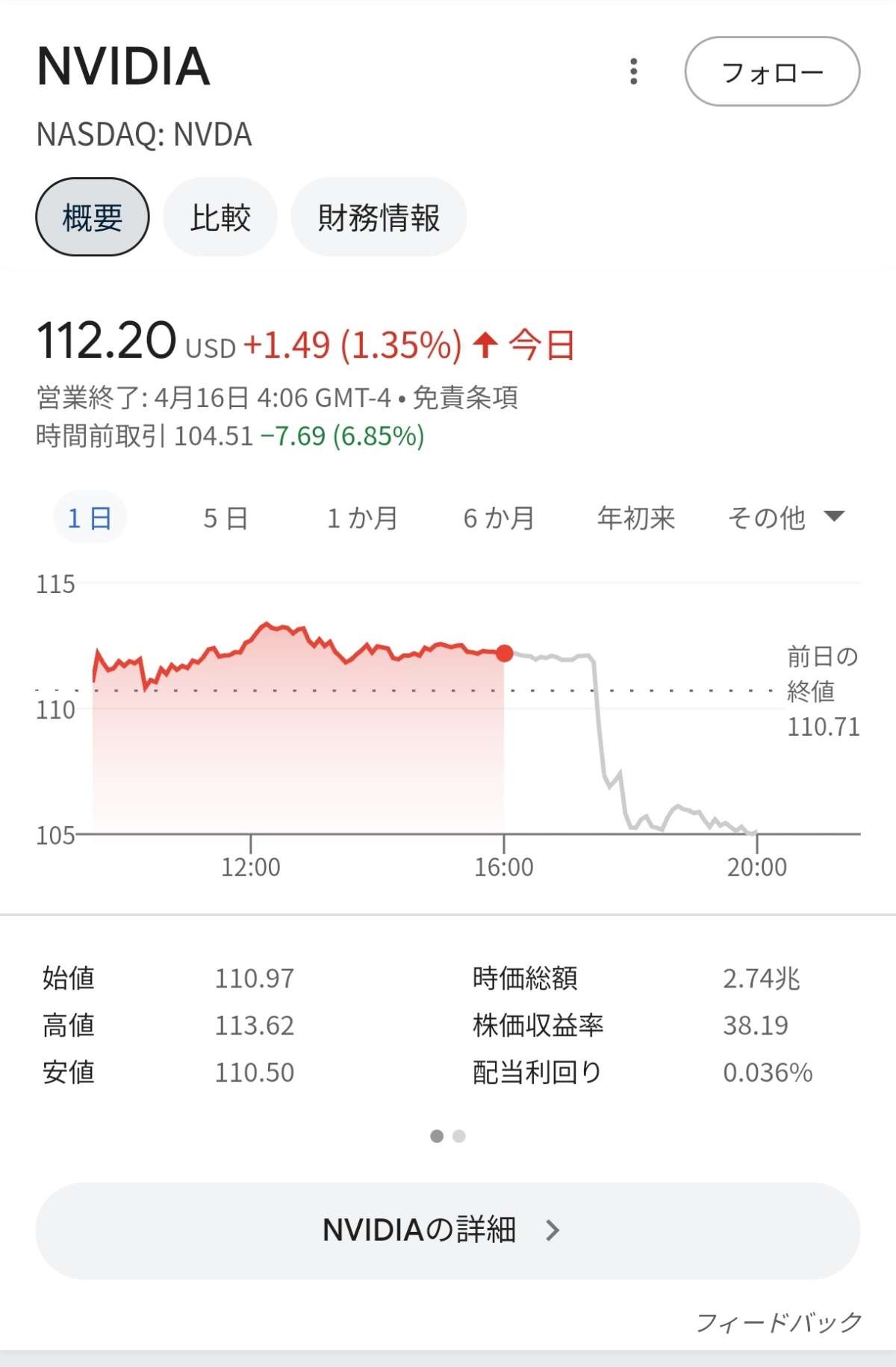 エヌビディア、時間外-6.83%で盛大に逝くwww