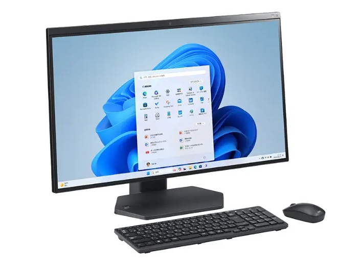 27型フルHD(1,920×1,080ドット)IPSパネルを搭載した一体型PC。CPUはCore i7-1355U、メモリは16GB、ストレージは512GB SSDを内蔵し、DVDスーパーマルチドライブも装備する。