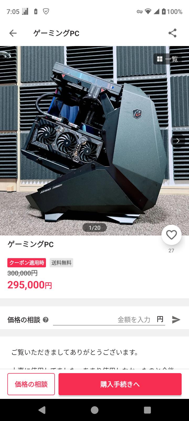 【画像】ドチャクソかっこいいゲーミングpcがフリマに出品される