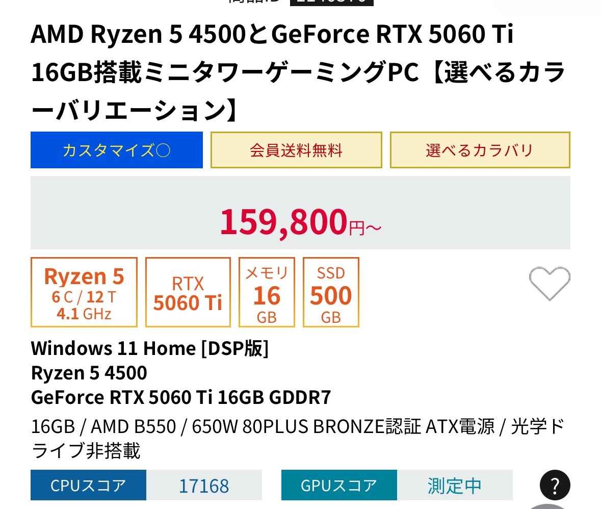 GeForce RTX™ 4060 Tiの組み合わせで売ってるところないんやが…😭BTOなら好きにグラボ選べるんじゃないんか?