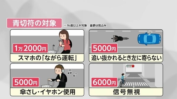 🚲罰則強化でチャリカス逝く…信号無視6000円、傘さし5000円、スマホ運転1万2000円、歩道を走ったら6000円