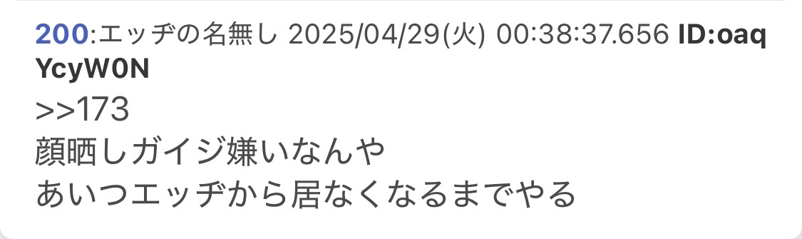 顔晒しゲェジは - 17 : 2025/04/29(火) 03:20:20.353 ID:EZ9xHEX3f