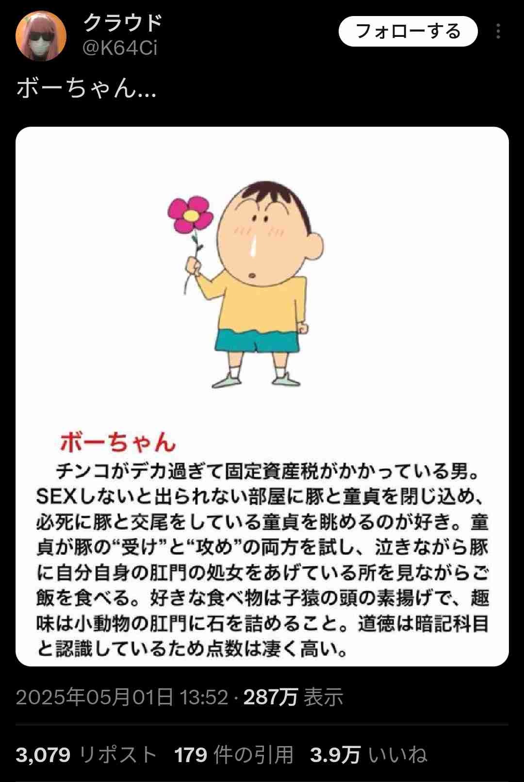 ぼーちゃんの名誉を著しく毀損してる