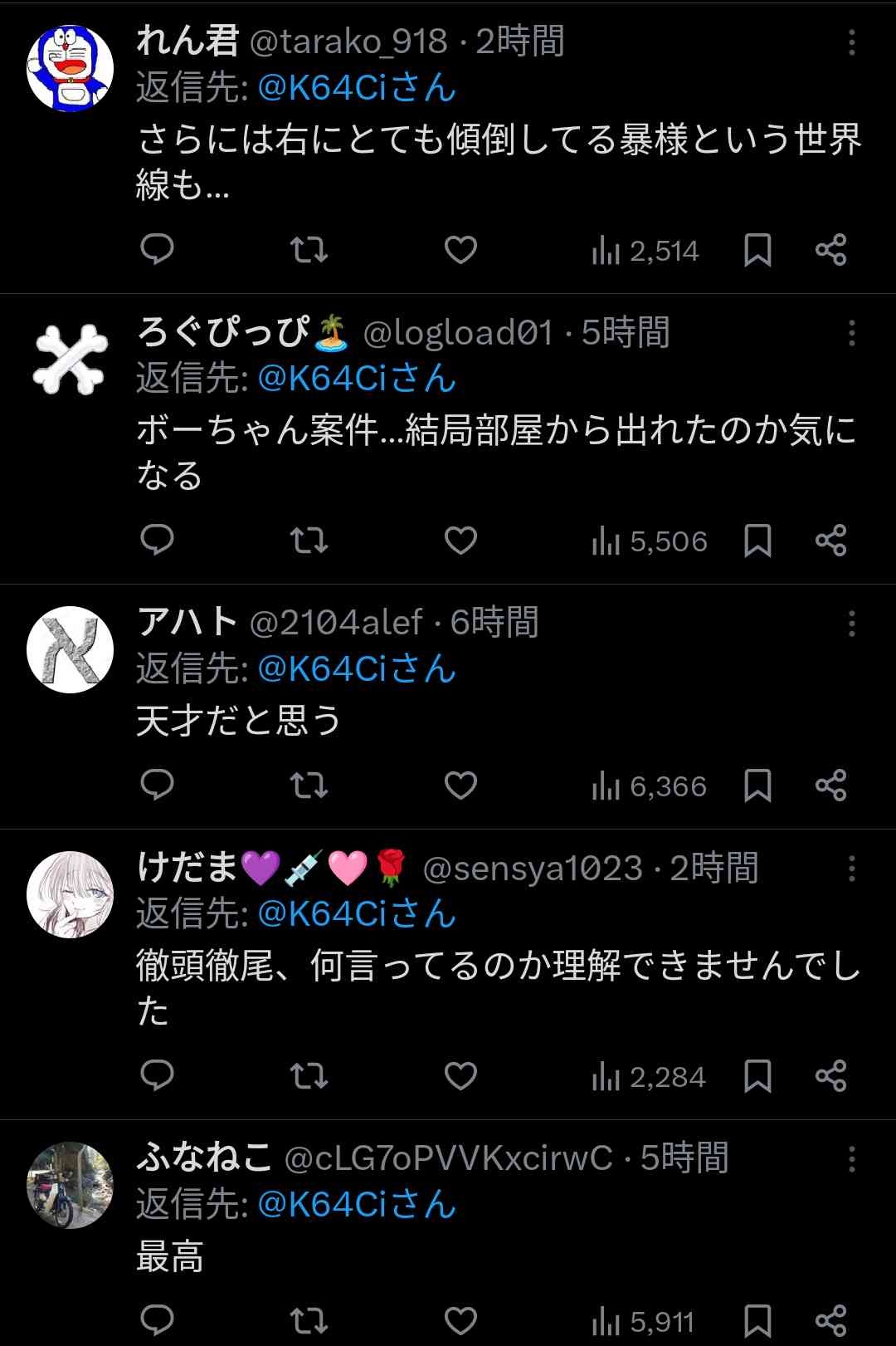 ついてるレスもなんもおもんない模様