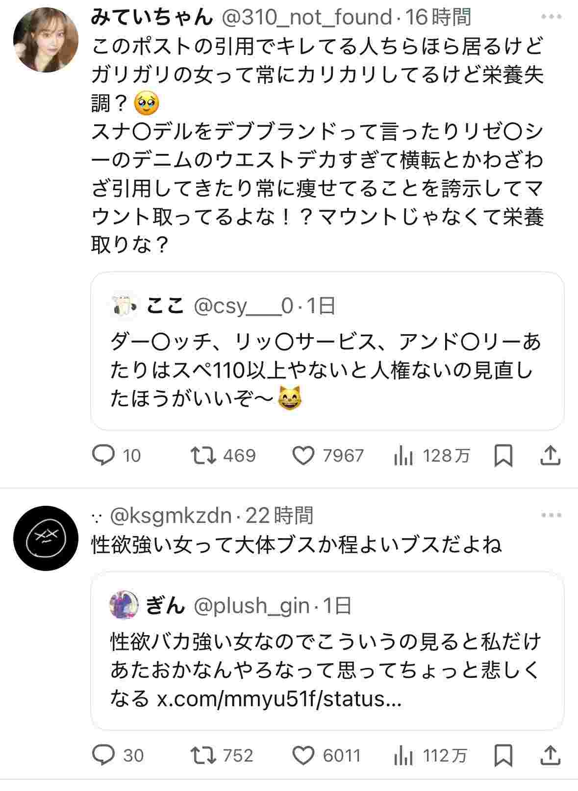 - 男同士の争いだとすぐリプや引用で大喜利会場になるのにこの差はなんなんやろな