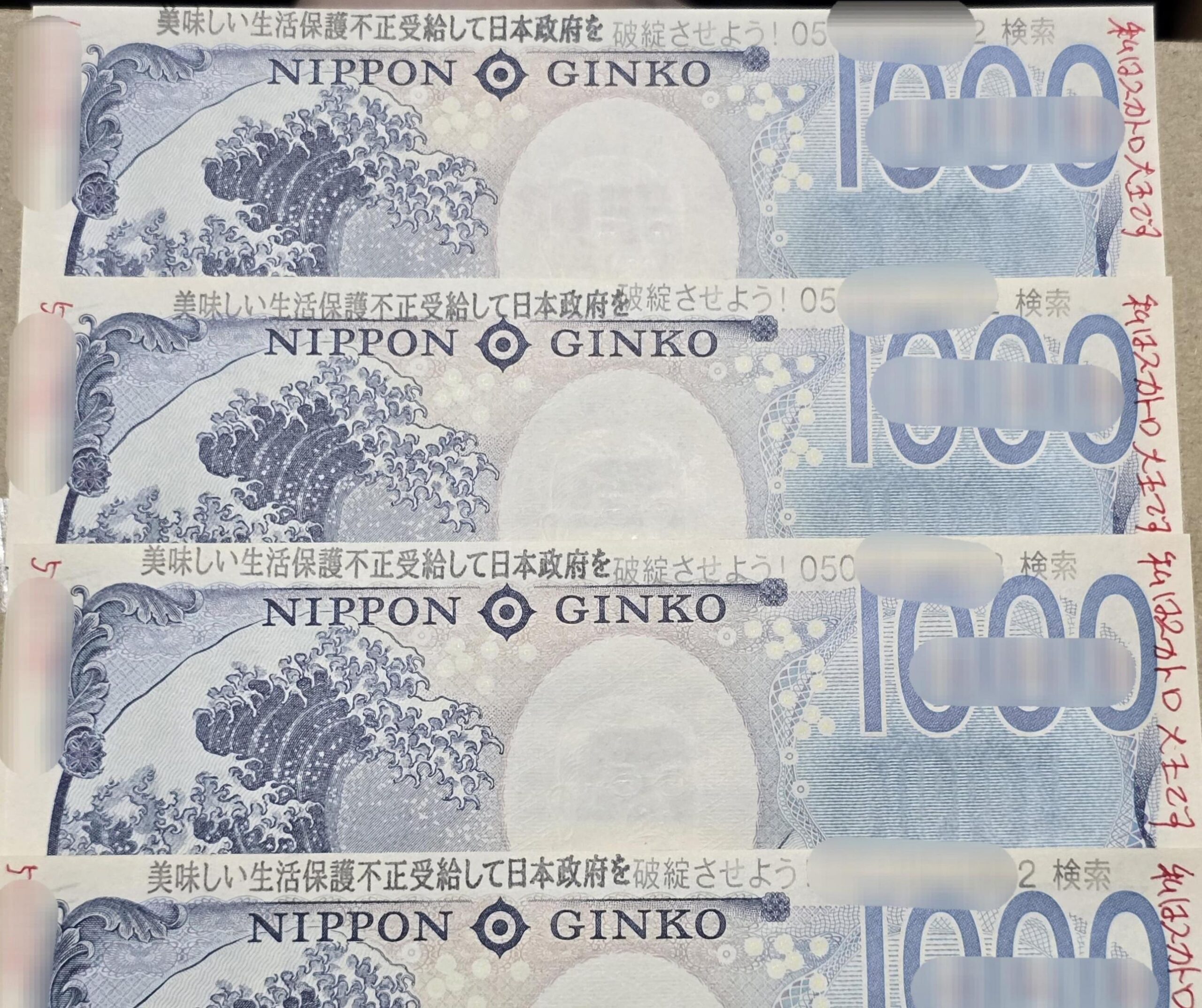「謎の言葉」書かれたお札、SNSで報告相次ぐ…勝手に落書きするのは違法か?