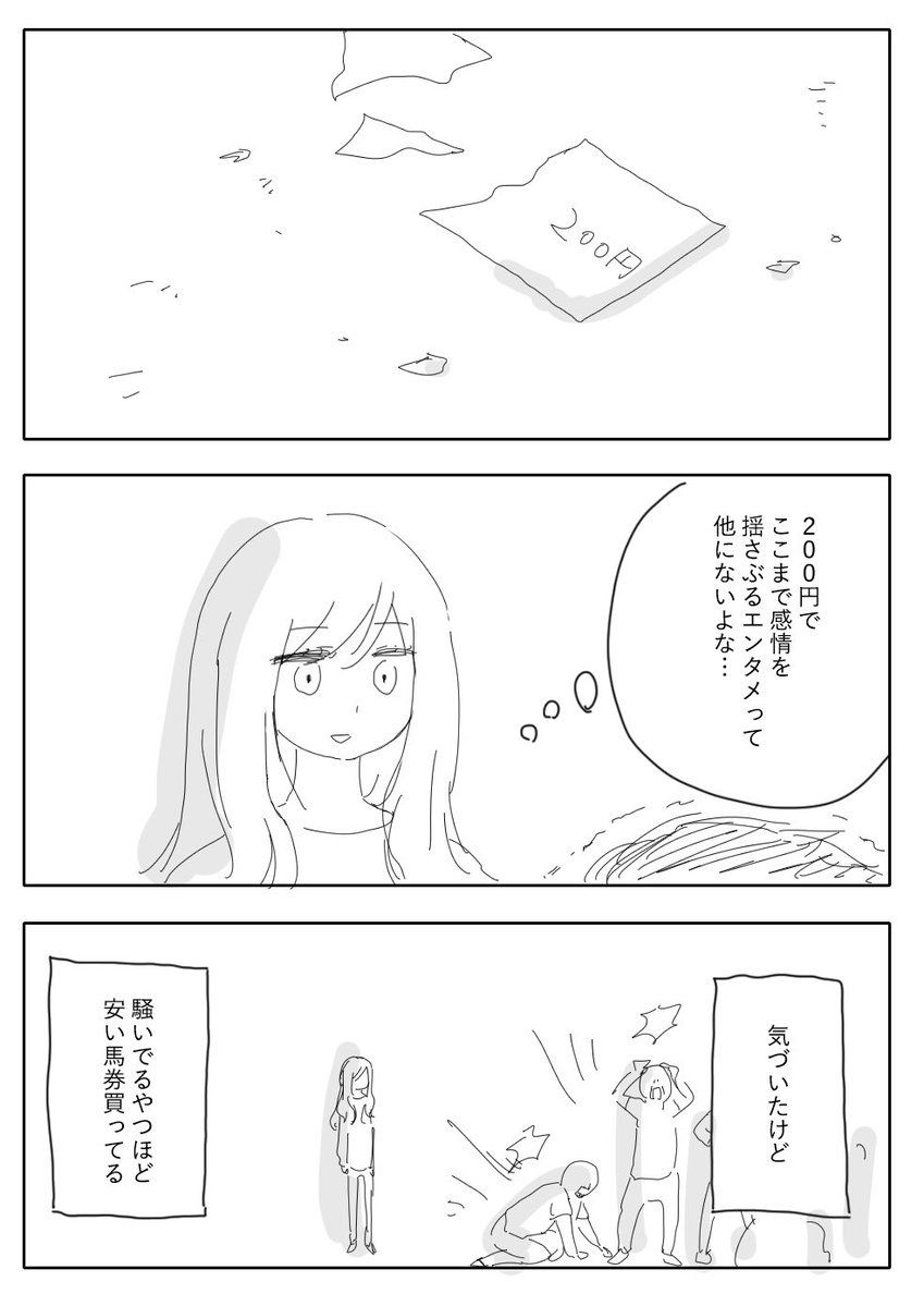 - そのレベルの豆券で感情入れてる奴が金払って競馬場入らねーだろ