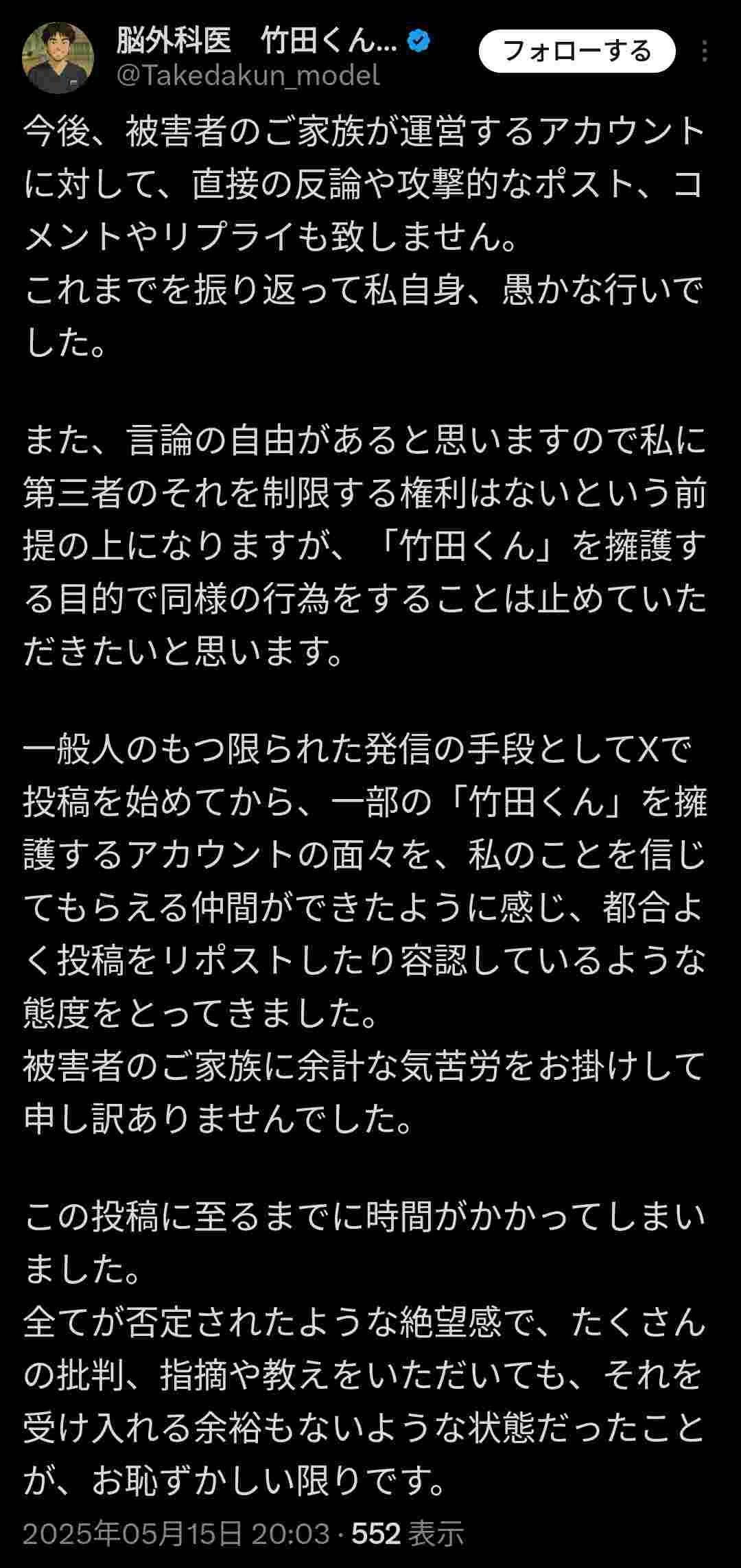 いうて前も弁護士に怒られたのにイキリツイートしてたからな - 17 : 2025/05/15(木) 20:22:11.339 ID:2fs2Mu/7L