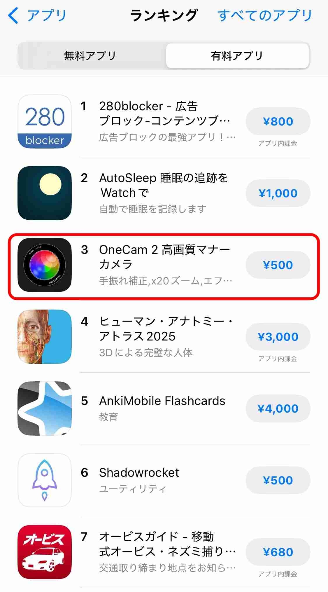 - 無音カメラアプリがランキング3位に入った模様