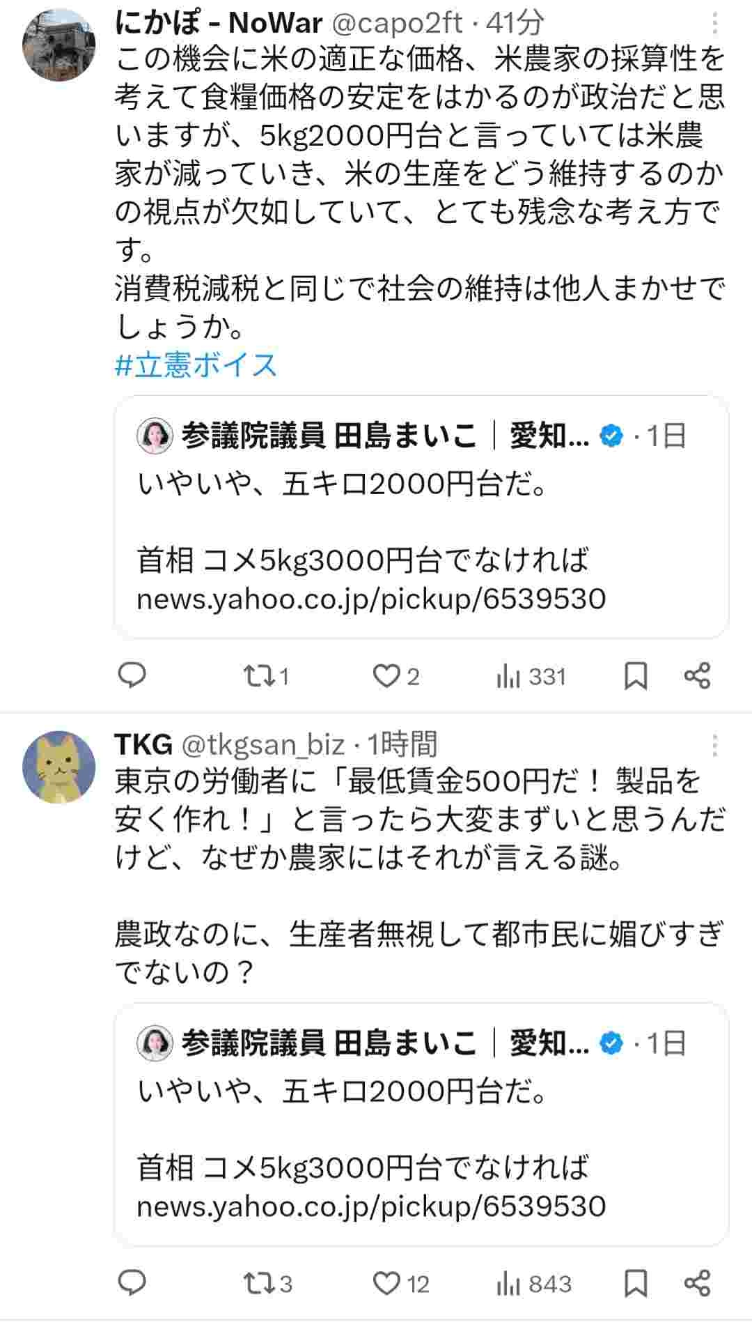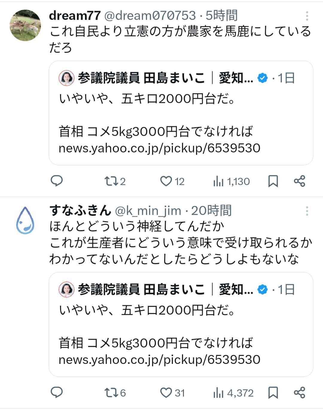 - 米農家とか俺らの奴隷なんだから安く売れよ