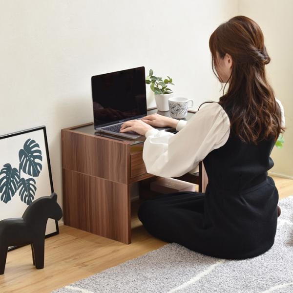 デスク 机 ローデスク ロータイプ テーブル ガラス天板 収納棚 収納ラック 引き出し オープンラック 北欧 ナチュラル カントリー おしゃれ シンプル 白 ホワイト