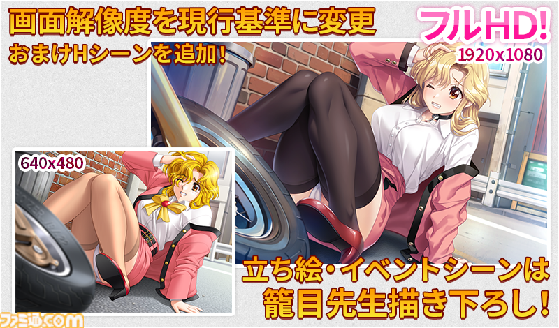 グラフィックはヒロインの立ち絵・イベントCGが、原画を担当する籠目氏の描き下ろしイラストに変更。ゲーム画面やUI(ユーザーインターフェース)はフルHDサイズにあわせてリファインが施されている。