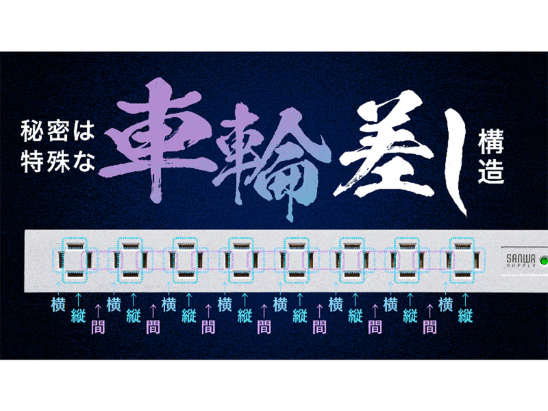 サンワサプライは、ACアダプタやプラグを縦/横どちらの向きでも挿し込める「車輪差し構造」を採用した電源タップ「700-TAP082」シリーズと「700-TAP083」シリーズを6月5日12時より「Makuake」にて先行販売を開始する。