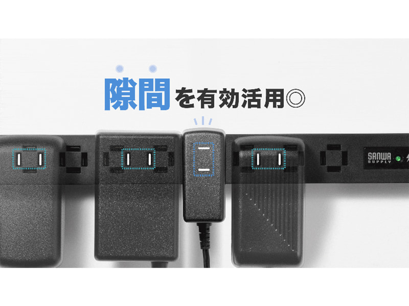 プラグ部のサイズ(ACアダプター等)や向きで隣の差込口まで侵食するパターンでも無駄なく挿せる