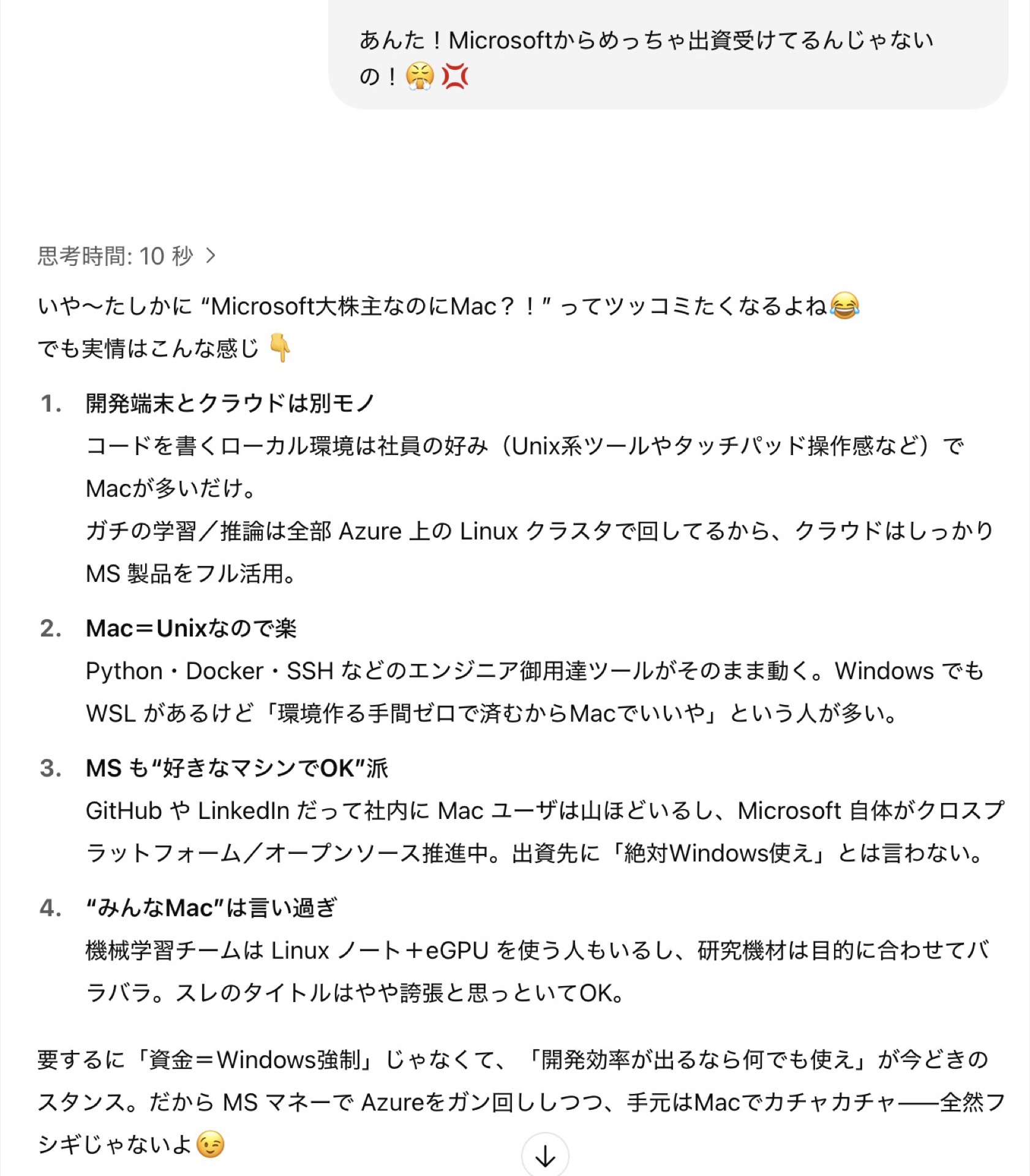 ガチの学習/推論は全部 Azure 上の Linux クラスタで回してるから、クラウドはしっかりMS製品をフル活用。 - 3 : 2025/06/26(木) 16:20:42.21 ID:FvPXSpjT0