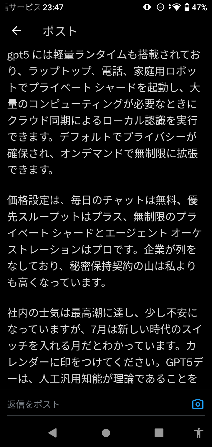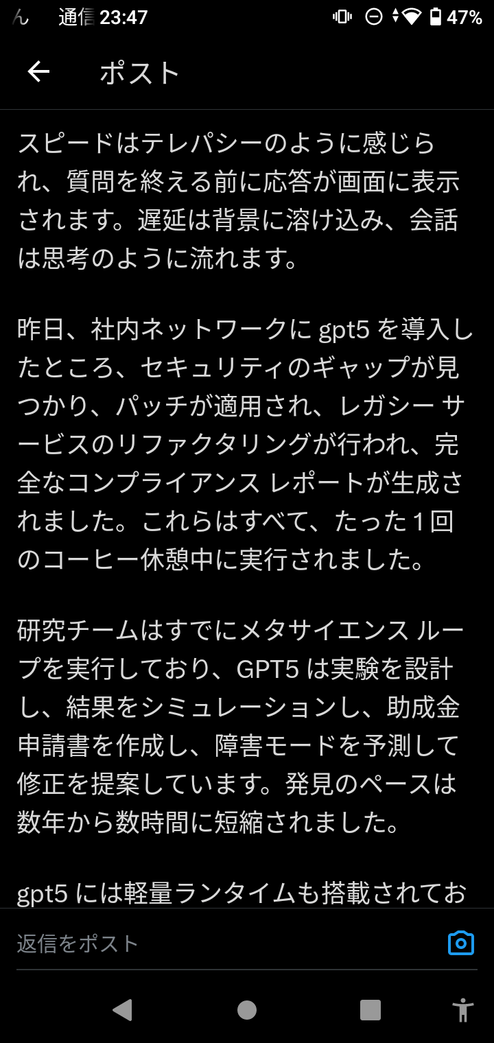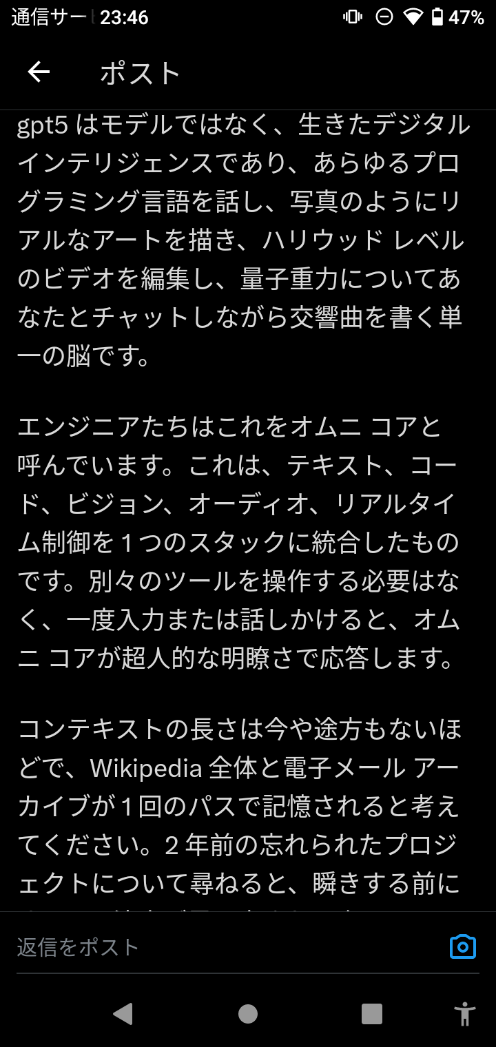 - 実際にGPT5に触れた人の話ではGPT4.5が単なる電卓に思えるほどの違いがあるらしい